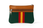 Confeccionado en tejido resistente verde con detalles en polipiel marrón y la bandera de España al frente, ofrece un equilibrio perfecto entre estilo clásico y espíritu actual. Incluye doble cremallera metálica para organizar monedas, billetes o tarjetas de forma práctica.