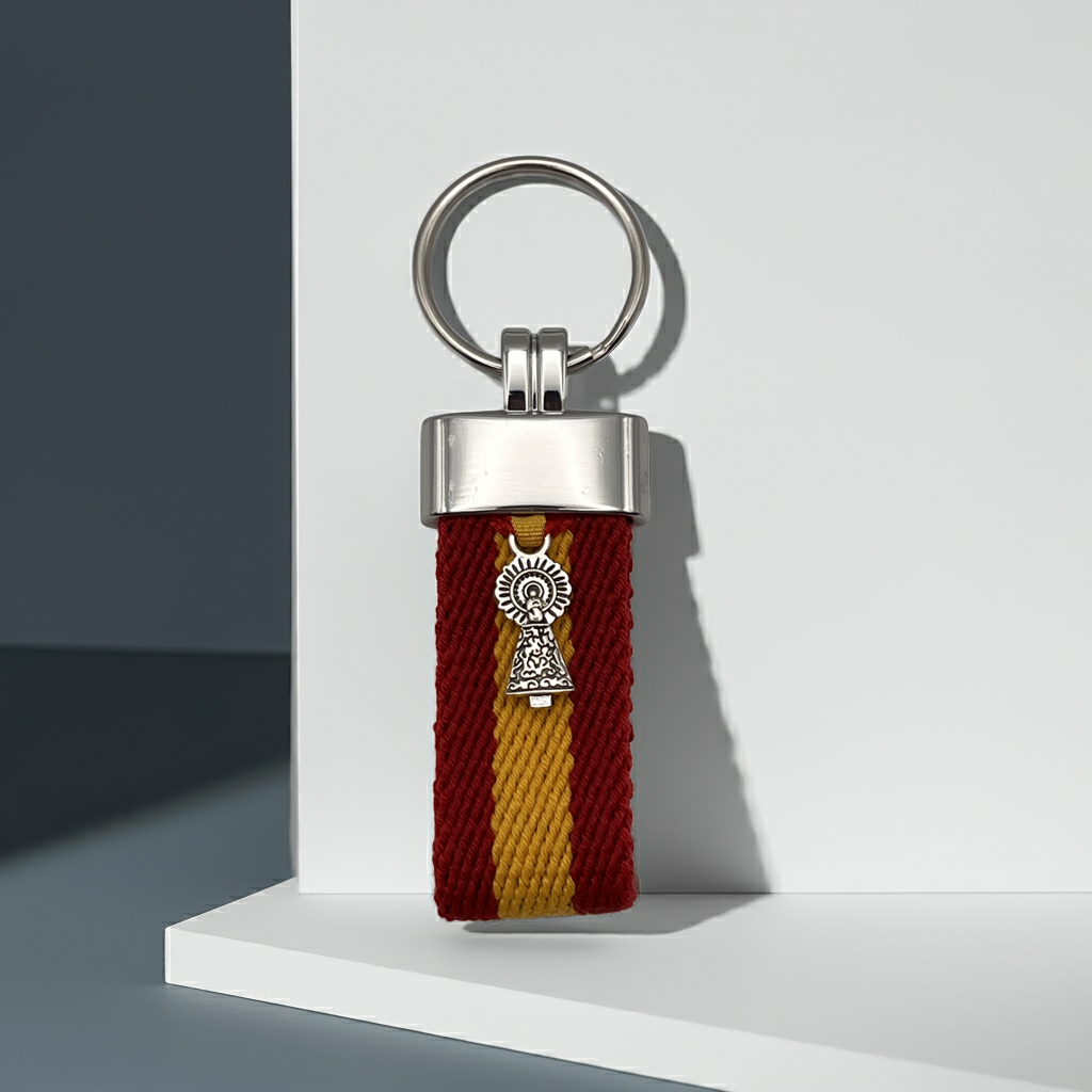 El llavero bandera de España con la Virgen del Pilar es un accesorio que une tradición, identidad y estilo en una sola pieza.